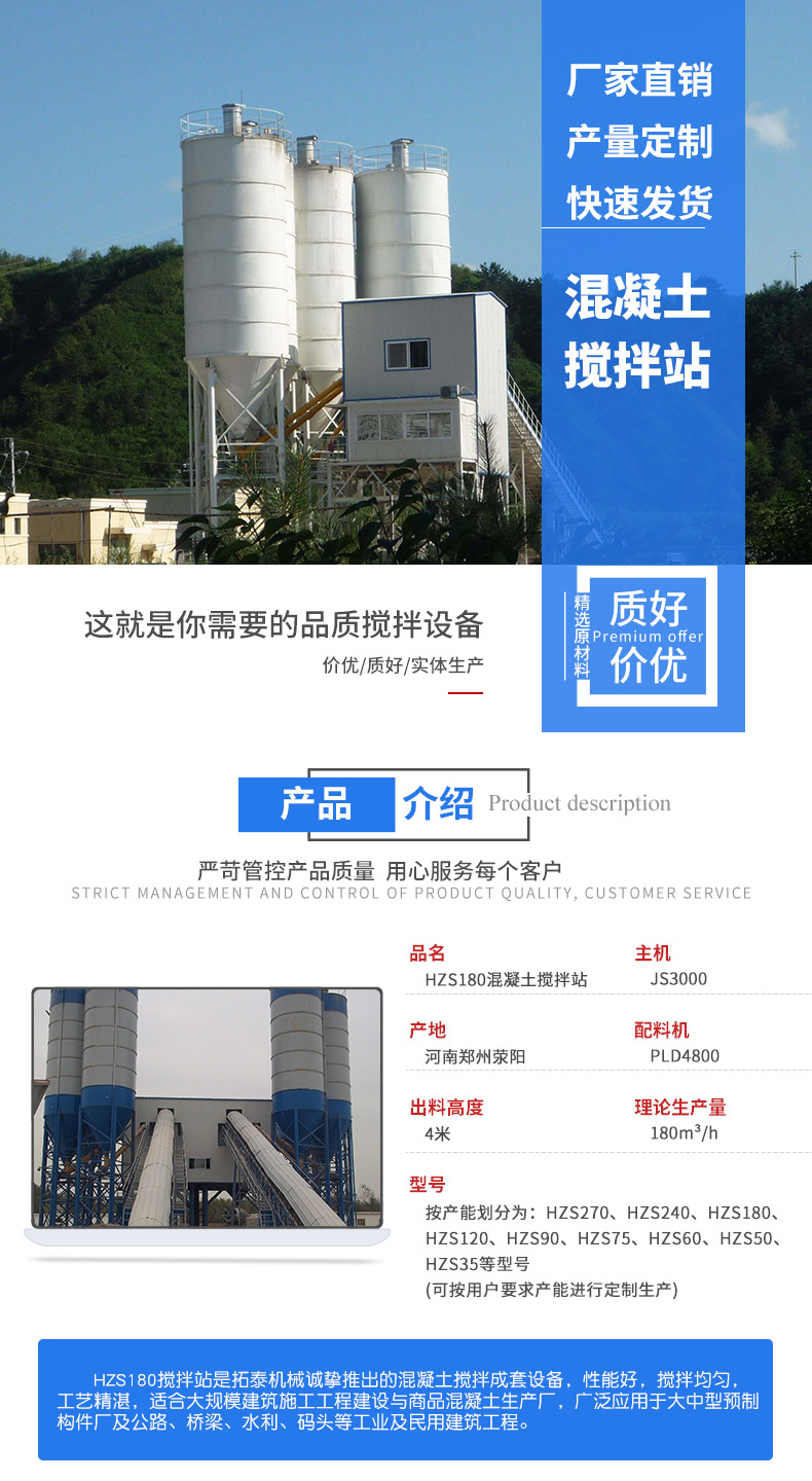 HZS180混凝土攪拌站的性能: